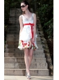 White A-Line / Princess V-neck Mini-length Taffeta and Print Beading Prom / Graduation Dress