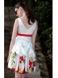 White A-Line / Princess V-neck Mini-length Taffeta and Print Beading Prom / Graduation Dress