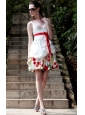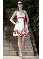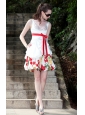 Home >  Prom Dresses >  Discount Prom Dresses > White A-Line / Princess V-neck Mini-length Taffeta and Print Beading Prom / Graduation Dress