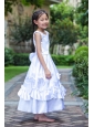 White A-line Scoop Ankle-length Flower Girl Dress Taffeta Hand Made Flowers