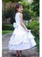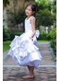 Home >  Flower Girl Dresses > White A-line Scoop Ankle-length Flower Girl Dress Taffeta Hand Made Flowers