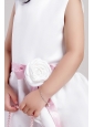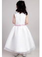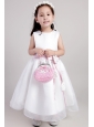 White A-line Scoop Ankle-length Organza Belt and Handle Made Flowers Little Girl Dress