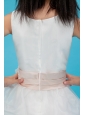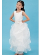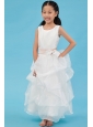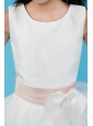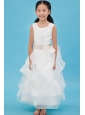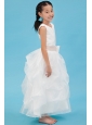 White A-line Scoop Flower Girl Dress Ankle-length Organza Sash