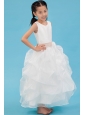Home >  Flower Girl Dresses > White A-line Scoop Flower Girl Dress Ankle-length Organza Sash