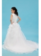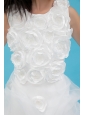 White A-line Scoop Flower Girl Dress Court Train Organza Hand Made Flowers