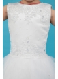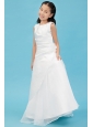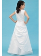 White A-line Scoop Flower Girl Dress Taffeta Appliques Floor-length