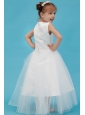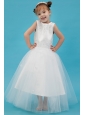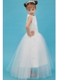 White A-line Scoop Flower Girl Dress Tulle Appliques Floor-length