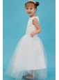 What are you looking for in a flower dress? If it's classic elegance and modern sparkle that will make younger girls feel special at formal occasions, then this may be the dress for you! This white one with a zipper closure features a wide U-shaped neckline and straps on the bodice with beaded appliques drenched which add a dainty touch. The skirt with sheer tulle ovelay to floor flares out in a dramatic way that is perfect for twirling and spinning the night away.