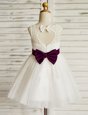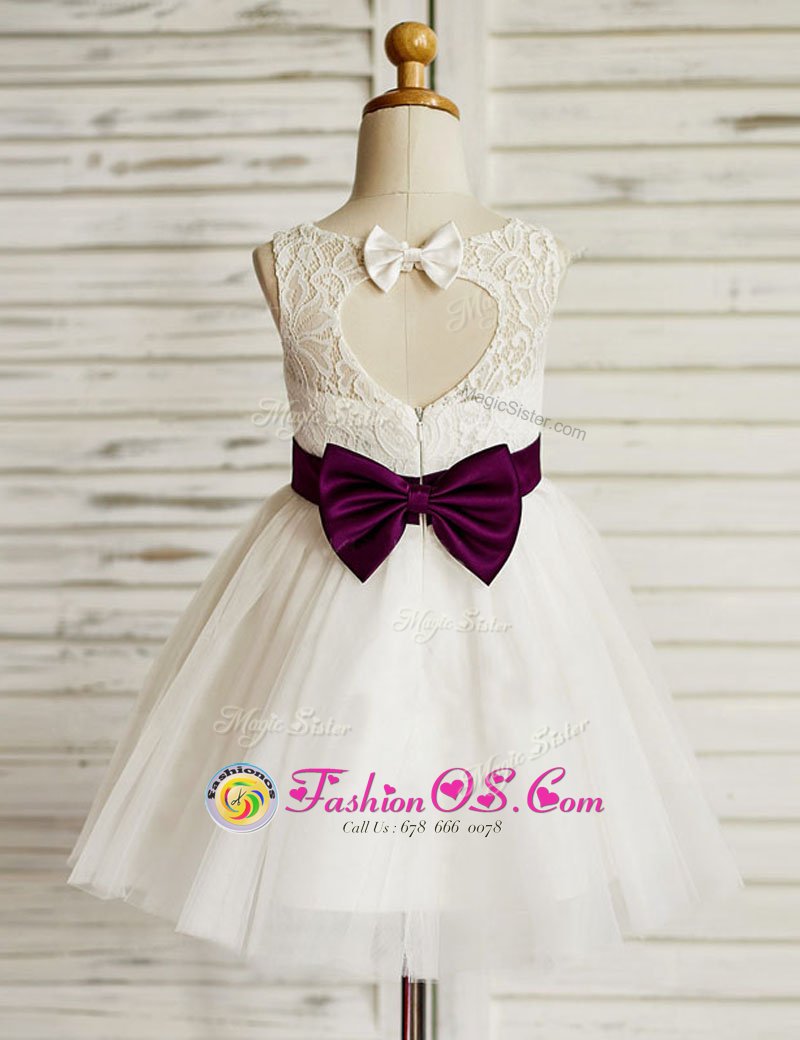 White A-line Scoop Sleeveless Tulle Mini Length Zipper Lace and Bowknot Flower Girl Dresses