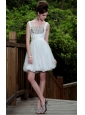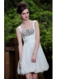 White A-line Square Mini-length Organza Rhinestones Prom / Homecoming Dress