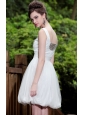 Cute i sthe only word which can expound this white short prom dress.Crystals and sequins adorn the strap bodice.The tull adorns the ruffle hem line skirt.The skirt makes you look like the prettiest princess on the world.It shows your slim fighre when you wear this white dress.