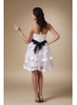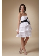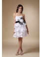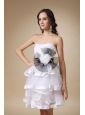 Home >  Prom Dresses >  Short Prom Dresses > White A-line Strapless Mini-length Organza and Satin Hand Made Flower Bridesmaid Dress