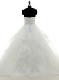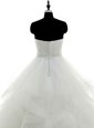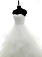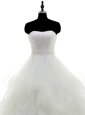 White A-line Strapless Sleeveless Organza Floor Length Clasp Handle Beading and Ruffles Bridal Gown