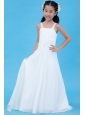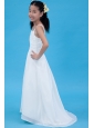 Home >  Flower Girl Dresses > White A-line Straps Flower Girl Dress Chiffon Embroidery Brush Train