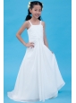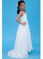 White A-line Straps Flower Girl Dress Chiffon Embroidery Brush Train