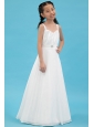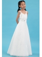Home >  Flower Girl Dresses > White A-line Straps Flower Girl Dress Taffeta Ruch and Hand Made Flowers Floor-length