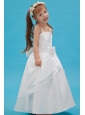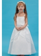 Home >  Flower Girl Dresses > White A-line Straps Flower Girl Dress Taffeta Sash Floor-length