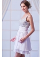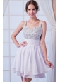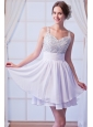 White A-line Straps Mini-length Chiffon Beading Cocktail Dress