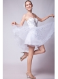 White A-line Sweetheart Prom Dress Organza Beading Mini-length