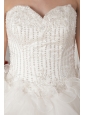 Be the belle of the ball in this fabulous white prom dress includes design of a sweetheart neckline which is generally considered more provocative than other style. You can find that gorgeous beadings and embellished appliques decorate the whole bodice which looks charming. The half open back of this short dress will make you look sexy. The skirt is made of several tiers of ruffled fabric, which gives it a great shape and allows for a beautiful silhouette! What are you waiting for? Bring it to your home! Now!