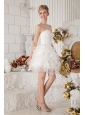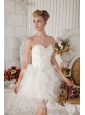 White A-line Sweetheart Short Prom Dress Organza Beading Mini-length