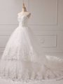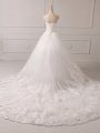 White A-line Tulle Sweetheart Sleeveless Lace and Appliques Lace Up Bridal Gown Brush Train