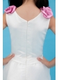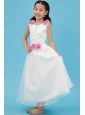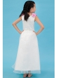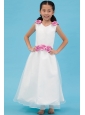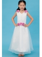 White A-line V-neck Ankle-length Flower Girl Dress Organza Hand Made Flowers