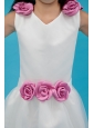 Home >  Flower Girl Dresses > White A-line V-neck Ankle-length Flower Girl Dress Organza Hand Made Flowers
