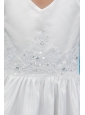 Your flower girl will shine like a star when she`s wearing this lovely floor-length dress! Impossibly fine material float down to the floor on the skirt. The simple top features a V-neck neckline and a sleeveless design. Apliques with sequins accent brightens up the waistline and the skirt. The zipper up back finish the effedt.Your angel will take the crown in this beautiful little girl dress.