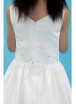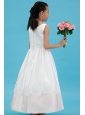 Home >  Flower Girl Dresses > White A-line V-neck Flower Girl Dress Ankle-length Satin Appliques