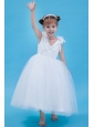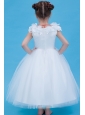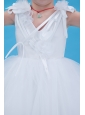 Home >  Flower Girl Dresses > White A-line V-neck Flower Girl Dress Ankle-length Tulle Hand Made Flowers