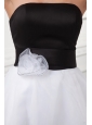 Home >  Prom Dresses >  Fashionable Prom Dresses > White and Black A-line Strapless Mini-length Organza Prom Dress with Ruffled Layers
