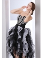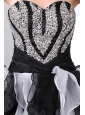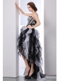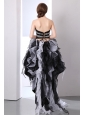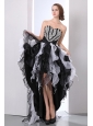 White and Black A-line Sweetheart Prom Dress High-low Organza Beading