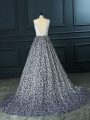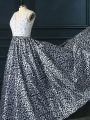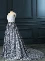 White And Black Backless V-neck Beading Evening Dress Printed Sleeveless Brush Train