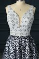 Home >  Prom Dresses >  Discount Prom Dresses > White And Black Backless V-neck Beading Evening Dress Printed Sleeveless Brush Train