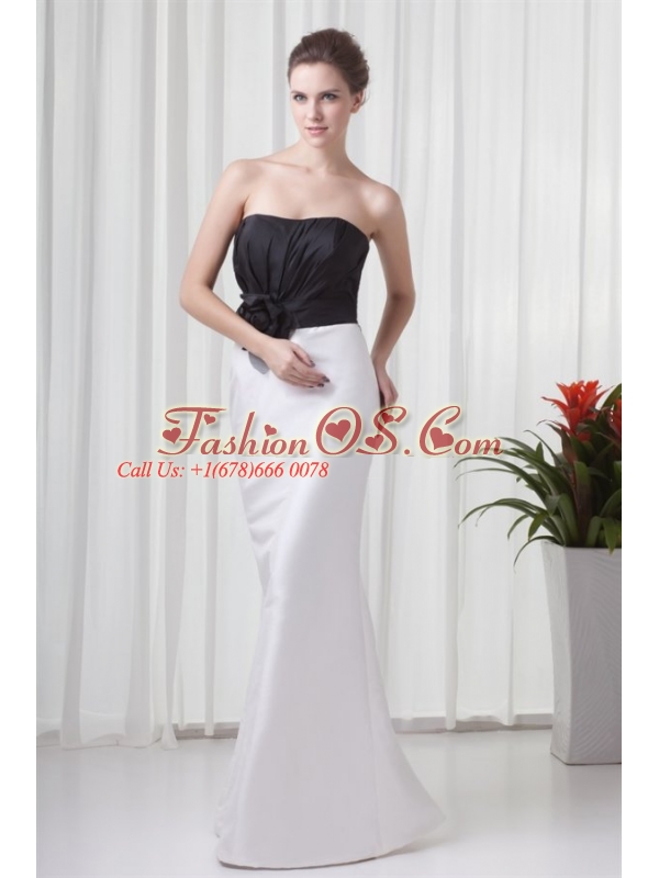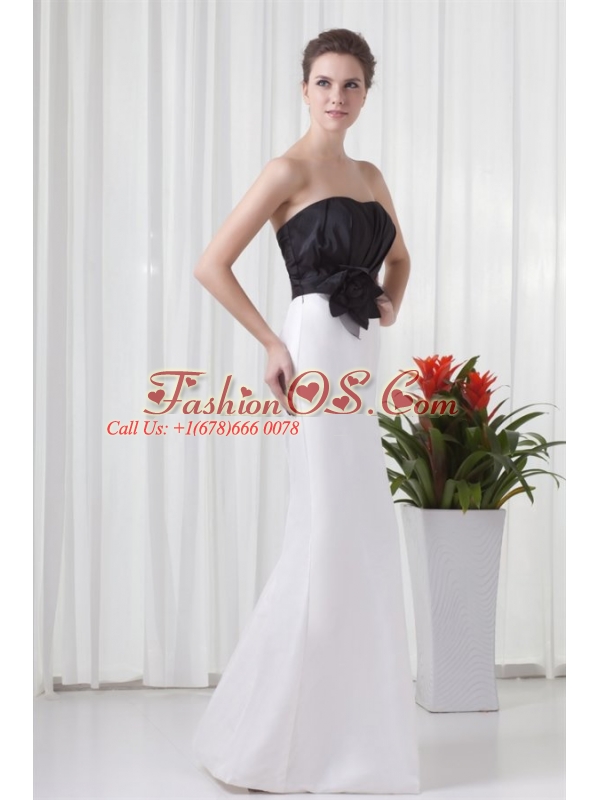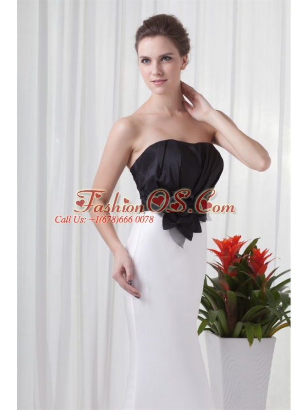 Home >  Wedding Dresses >  Perfect Wedding Dresses > White and Black Column Sweetheart Wedding Dress with Flower