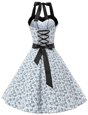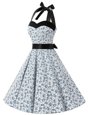 White And Black Halter Top Neckline Sashes|ribbons and Pattern Dress for Prom Sleeveless Zipper