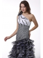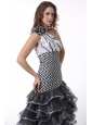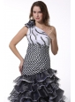 White and Black One Shoulder High-Low Prom Dress with Ruffled Layers