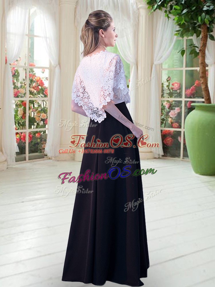 White And Black Short Sleeves Lace Floor Length Dress for Prom