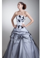 White and Black Strapless Appliques and Flowers Quinceanera Dress