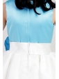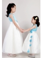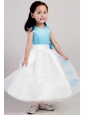 Home >  Flower Girl Dresses > White and Blue A-line Scoop Ankle-length Taffeta and Organza Hand Made Flowers Flower Girl Dress