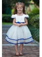 White and Blue Ball Gown Scoop Flower Girl Dress Knee-length Taffeta and Organza Bow