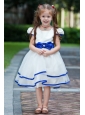 Home >  Flower Girl Dresses > White and Blue Ball Gown Scoop Flower Girl Dress Knee-length Taffeta and Organza Bow