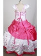 White and Hot Pink Cap Sleeves Embroidery Decorate Flower Girl Pageant Dress