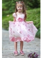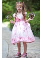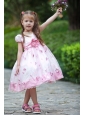 White and Pink A-line Scoop Flower Girl Dress Tea-length Taffeta and Organza Hand Made Flowers