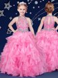 Home >  Special Occasion Dresses >  New Style Little Girl Pageant Dresses > White and Pink And White Halter Top Zipper Beading and Ruffles Little Girls Pageant Gowns Sleeveless