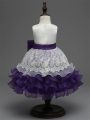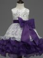 White And Purple Zipper Pageant Gowns For Girls Lace and Ruffled Layers and Bowknot Sleeveless Tea Length