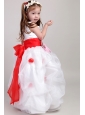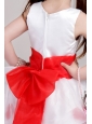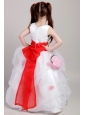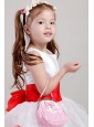 Home >  Flower Girl Dresses > White and Red A-line Scoop Floor-length Taffeta and Organza Bow Flower Girl Dress