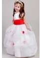 White and Red A-line Scoop Floor-length Taffeta and Organza Bow Flower Girl Dress