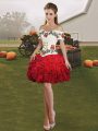 White And Red Ball Gowns Embroidery and Ruffles Ball Gown Prom Dress Lace Up Organza Sleeveless Floor Length